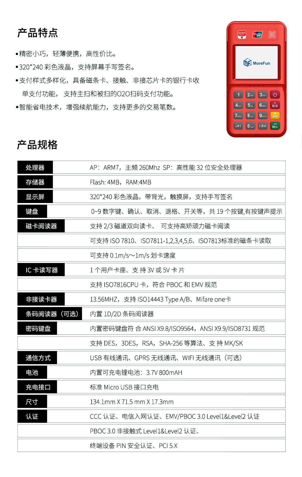 首页>>赵县产品中心>>赵县手持无线POS 赵县电银支付-4G+扫码枪 高配版 * 性能优越:32位高性能ARM11安全CPU;整机通过业内更先进的PCI PED4.X 安全认证及国内受理终端PIN输入设备安全评估检测认证,多项措施保障金融交易的安全;* 时尚外观:外形小巧携带方便,高抗跌落性能、宽工作温度、防水防尘设计、外壳坚固耐刮、户外携带式作业更加耐久可靠。* 通讯备份:支持2G-3G扩展;* 超长续航:3.7V-800毫安稳定续航能力,智能电池管理保证持续工作18小时,待机72小时。 标准配置 返 回